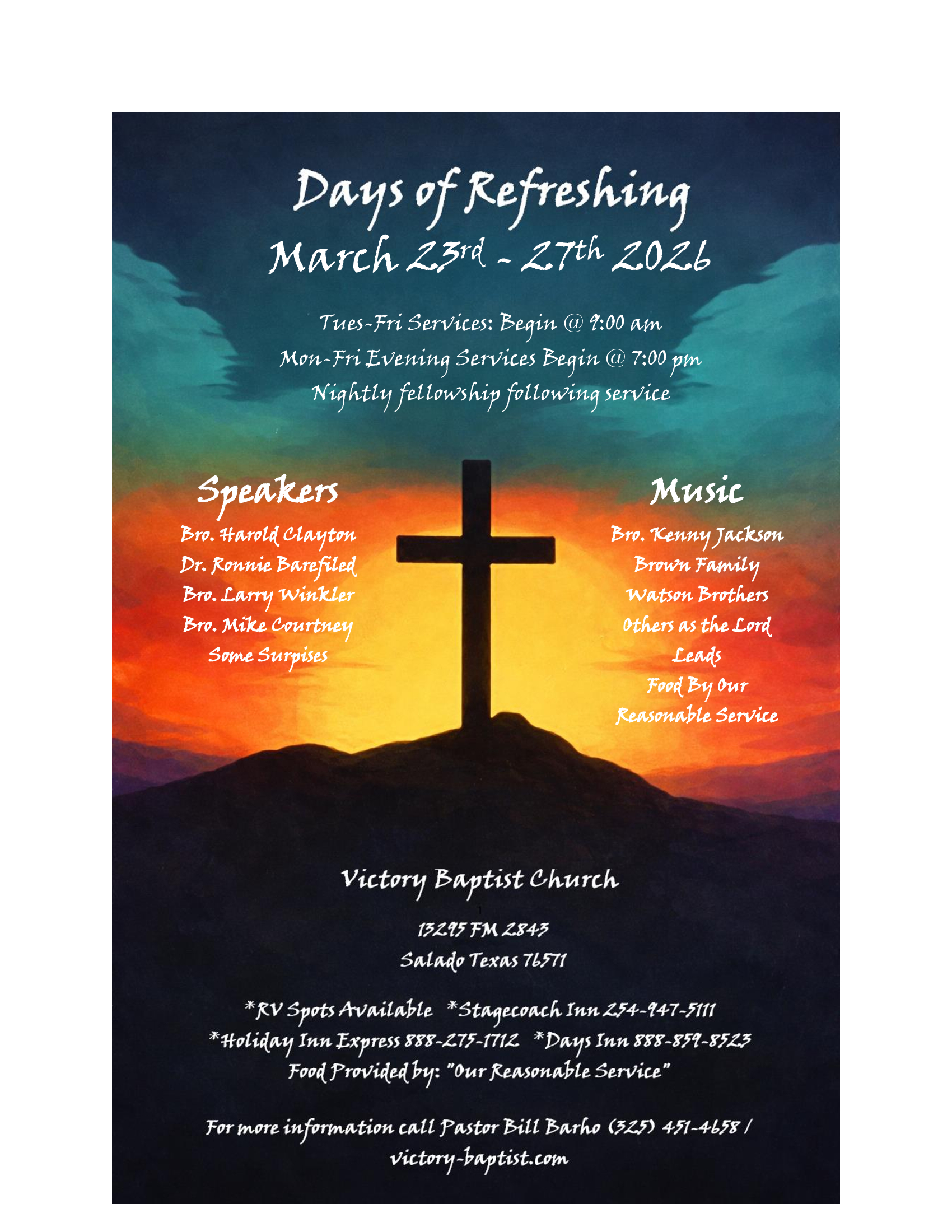 March 23th-27th 2026 with: Harold Clayton, Mike Courtney, Ronnie Barefield, Larry Winkler, Kenny Jackson, Brown Family, Watson Brothers