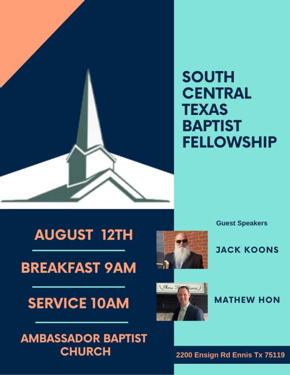 Ambassador Baptist Church Pastor Marc Smith 2200 Ensign Road Ennis, TX 75119 (972) 875-8528
